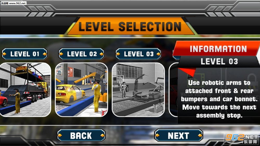 1、模拟超真实的轿车制造工厂,3D效果给玩家非常好的体验,360度无死角旋转屏幕,让你从各个角度来了解跑车的构造;