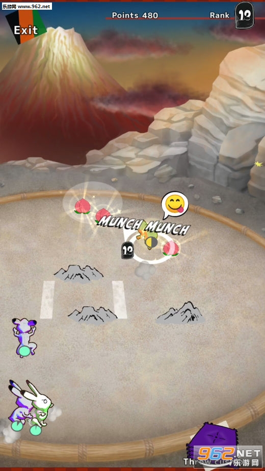 玩家需要操纵角色,去淘汰更多的对手,争取最终的冠军,注意吃桃子补充体力哦!