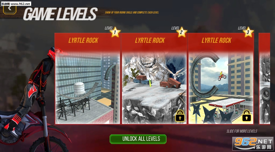 《摩托车特技2026安卓版》小编温酒认为是一款3D写实风格,以摩托车特技为题材的休闲闯关类游戏。在游戏中,玩家将要驾驶一辆摩托车,运用特技和操作去闯过一个又一个高难度的关卡设计,化做不到的为可能!