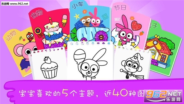 这里有丰富多彩的颜色,方便使用的工具,生动有趣的主题图案,让小艺术家们自由发挥绘画才能!