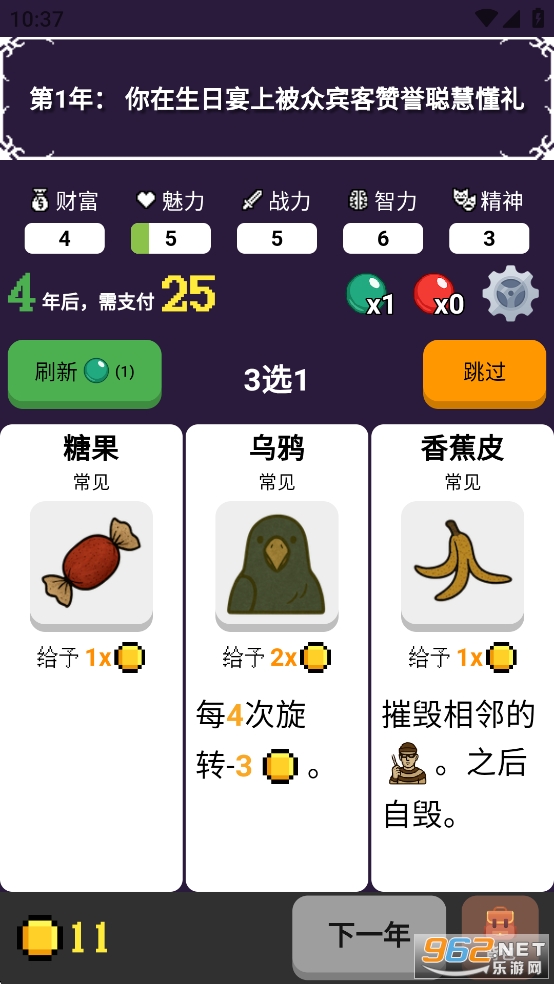 这是一款结合了肉鸽构建和文字冒险模拟的策略回合游戏。
