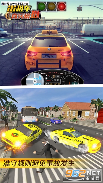 成为真正的出租车司机,系上安全带,注意遵守交通规则,快速平稳的送达乘客是您的首要目的哦!