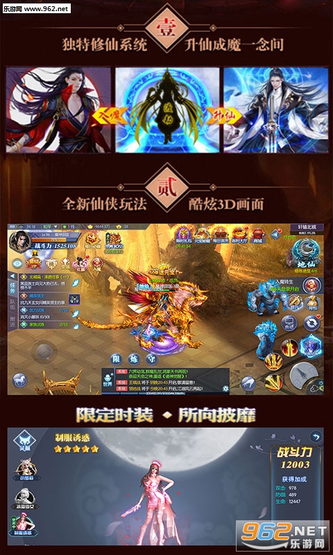 纯正3D且支持千人大世界同时在线,世界boss、领主之战、轩辕城战以及婚姻红颜系统等核心PVP玩法,战火席卷三界!