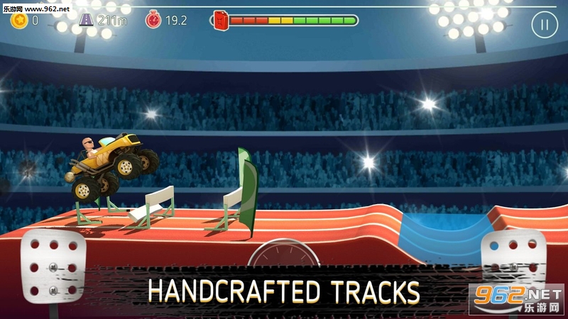 2.快速将车驱动,沿着崎岖的山路行驶,克服各种障碍并完成高难度的动作以获得高分。