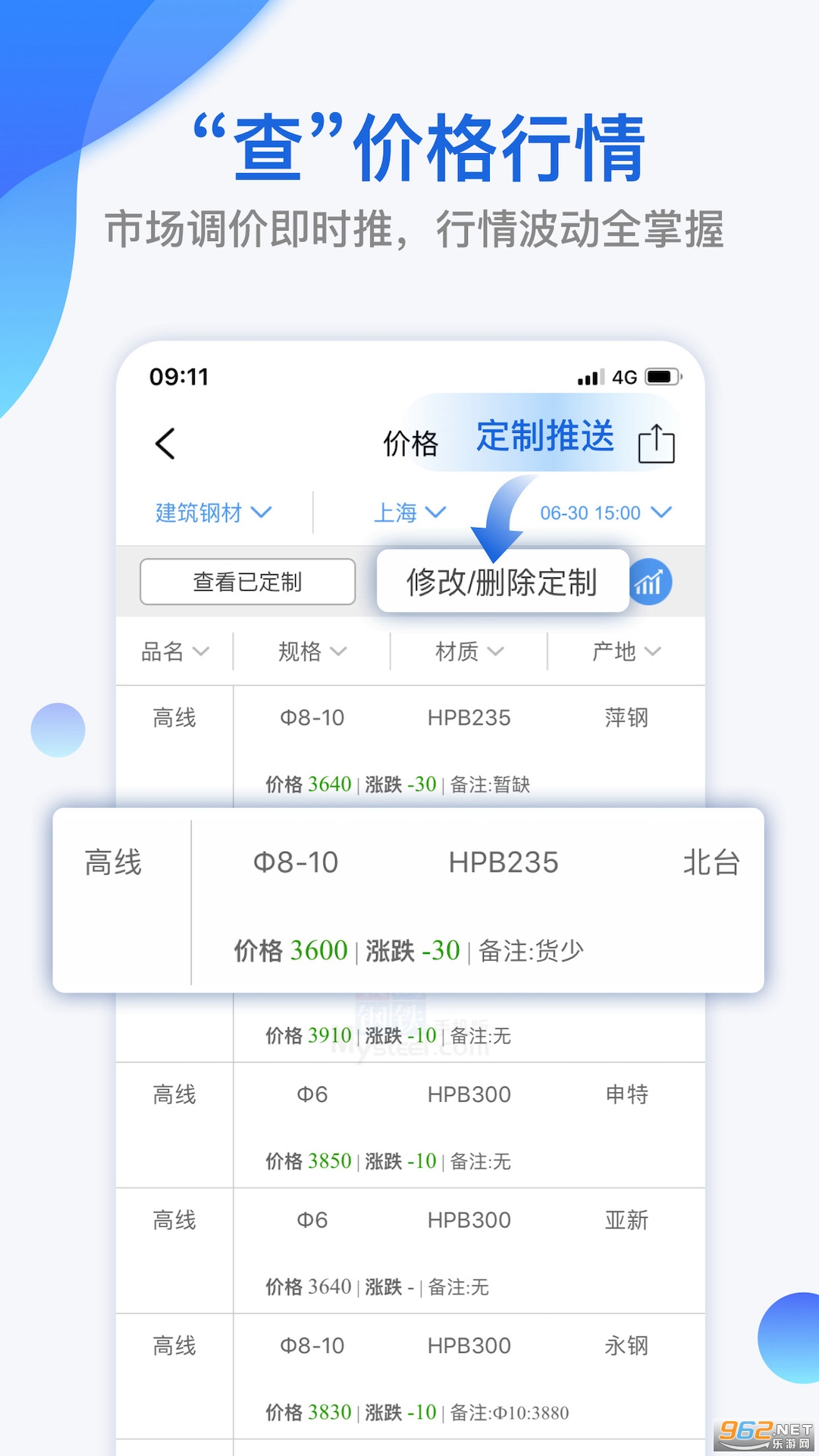 《我的钢铁最新版》是钢材行业一站式服务平台,包括查价格行情,观市场动态,听行业快讯,发供求资源,让你随时掌握钢材市场的最新动态和资讯,解决用钢需求或者寻找商机,超级方便,快来下载体验吧!