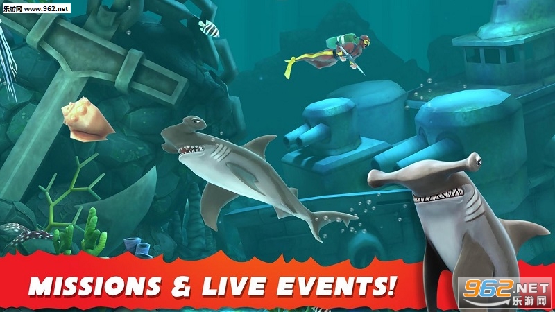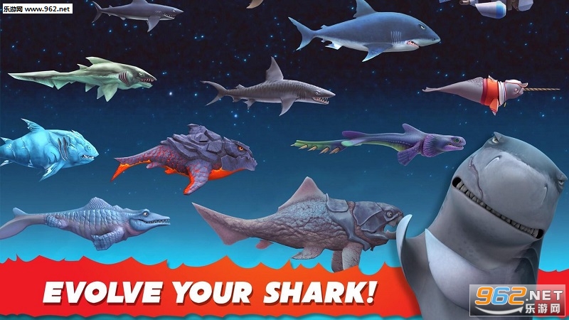 饥饿的鲨鱼世界(Hungry Shark)是一款画面设计非常精致细腻的休闲益智手游!在游戏中游泳千万一定当心!比从前更饥饿的饥饿的鲨鱼回来啦!体验作为鲨鱼的终极生存挑战,畅游3D动作游戏世界.,从幼仔成长到最多10吨的大白鲨! 用你自己的方式探索充满惊奇和危险的水下世界。品尝海洋生物大餐,游泳者,龟类,捕鱼人,从而长成巨大的鲨鱼。与其他鲨鱼,潜水艇,以及更多形形色色奇奇怪怪的深海生物作战,持续连击获得高分!完成任务,寻找宝物取得金币与宝石。消费这些奖励来升级你的鲨鱼或者购买特殊救生道具。一步一步解锁更多水下凶猛野兽:灰鲭鲨,锤头鲨,虎鲨和无敌的大白鲨!