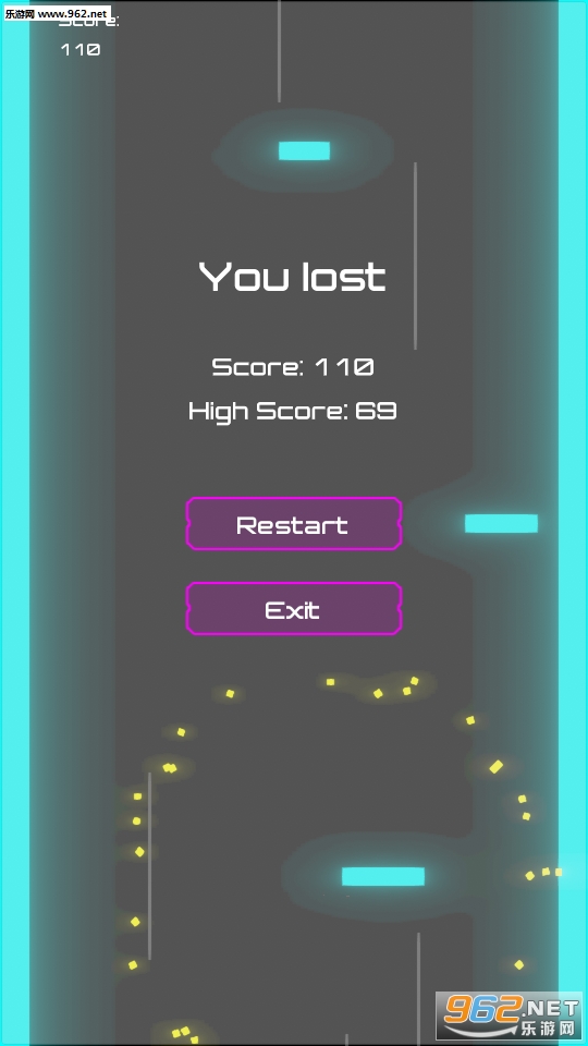 游戏的操作非常简单,只需要点击左右两边的屏幕,但是很容易碰到墙壁和障碍物,挑战你的最高分吧!