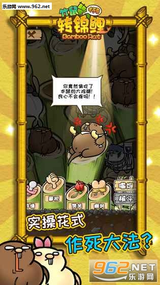 第六代以上的竹鼠都很皮,不愿意进化,这时各种奇葩道具(青瓜、平底锅)派上用场了!玩家策略使用道具和竹鼠来一次灵魂对话!没有什么是一场灵魂对话解决不了的,如果不行,那就两场。