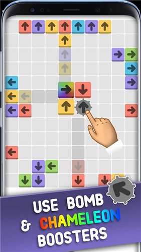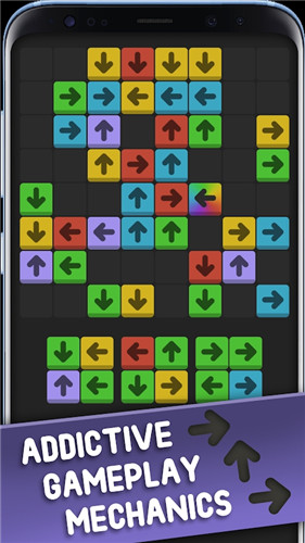 总体来说非常不错的一款益智休闲类的游戏,操作简单易上手 游戏的过程中玩家们需要通过轻松简单的手指点击和滑动的方式控制你的方块跟随着上方指示箭头的方向进行移动,操作轻松简单,但是需要玩家更加灵活的思维能力,喜欢的亲们赶紧下载吧。