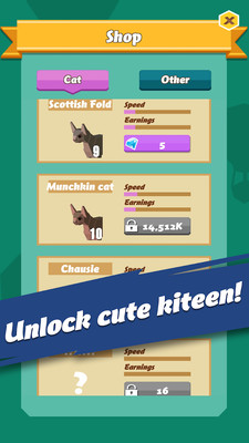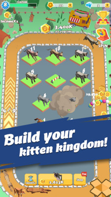 一款非常有趣的休闲小游戏,玩家在游戏里的主要任务就是饲养一只只可爱的小猫,让后通过两两合并的方式,去进化成更高级的品种猫,如此往复。