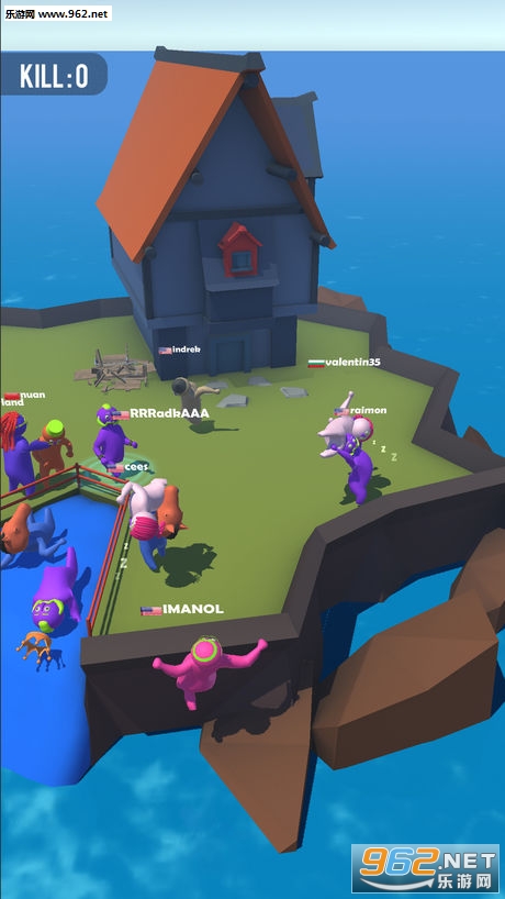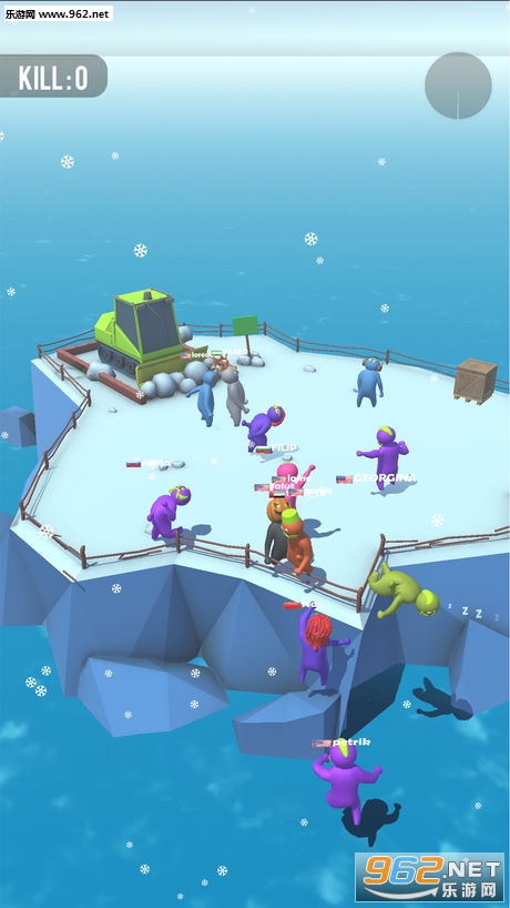 因为Partyio的胜利条件不是看谁丢下的人数多少,而是谁才是最后一位站在平台上,所以在游戏开始的时候,我们的第一目标不是丢人,而是保证自己的生存,因此玩家们需要疯狂走位,躲避其他的玩家的袭击,在保证自己生存的情况下,再去想办法将其他玩家丢出平台。