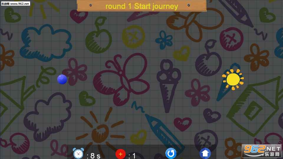 2、帮助蓝色的小球去撞击太阳,一旦撞上就能取得游戏胜利;