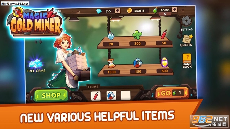 在Gold Miner 2026游戏中的任务,你是一个淘金者,你的工作是挖掘大量的黄金,钻石(珠宝)。怪物鼠标,炸药,石头,骨头是你需要避免的困难障碍。你有支持物品如炸弹,钻石抛光,幸运三叶草,力量饮料,魔法时钟......你准备好了吗?淘金热的时候到了!