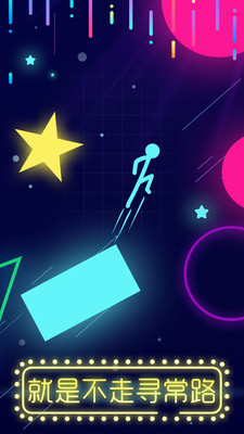 游戏中你需要帮助火柴人成功的跳跃到霓虹灯方块上将它的色彩点亮,不管是翻转还是滑动都是可以,颜色的形状开始移动,旋转,甚至爆炸,致命的尖峰成为一个持续的威胁,你可怜的小粘人的生活。如果你跳投失误,如果你的翻转没有命中目标,每关都有最多3颗星的奖励,收集的星星越多你的分数也会越高,注意好自己的力度!