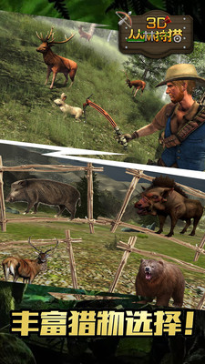《3D丛林狩猎安卓版》这是一款超真实的模拟狩猎手游。玩家将扮演丛林猎人,凭借精湛的射箭技巧,狩猎各种野生动物,而且可以解锁不同的武器。游戏上手容易,关卡丰富,感兴趣的玩家不要错过哦!