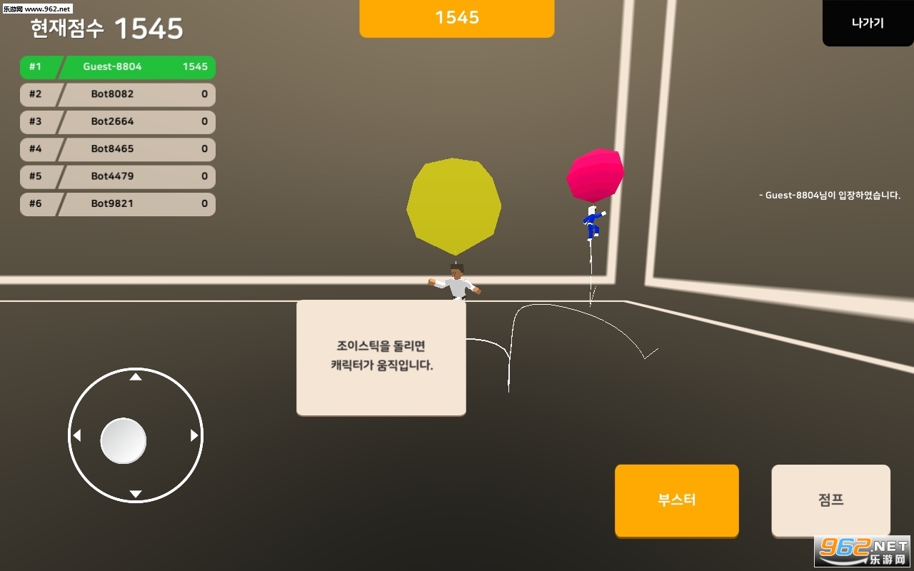 你可以通过按下对手的气球将你的对手移出房间。