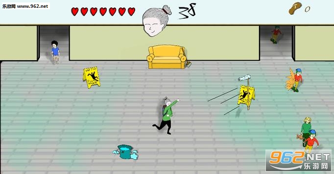 2、一款玩法非常简单而且有趣的游戏,玩家要控制在拖地的妈妈用拖鞋去打从房间经过的熊孩子,打中越多分数越高;