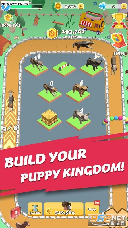 想知道进化后小狗的外表吗? 《奔跑的小狗Running Puppy》是一款非常容易上瘾的地方游戏,以狗为主题,只需购买,合并和升级狗,放在赛道上,驯服他们比赛赚取金币!