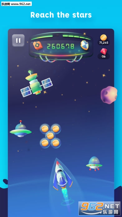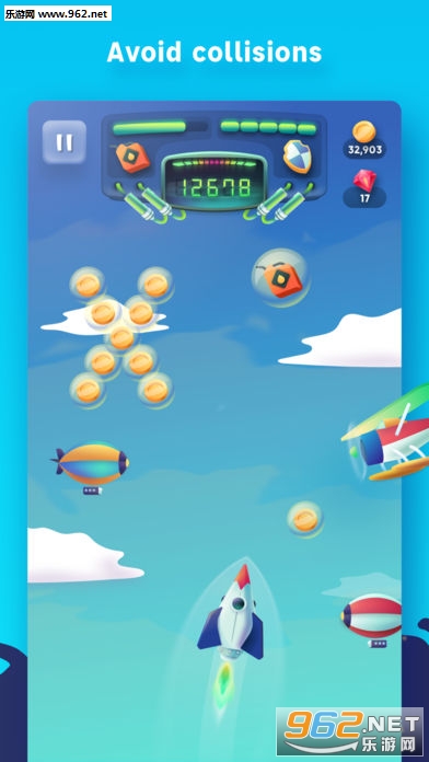 玩家需要拖动火箭,避开障碍和收集金币,而且可以升级火箭,探索更高的天空哦!