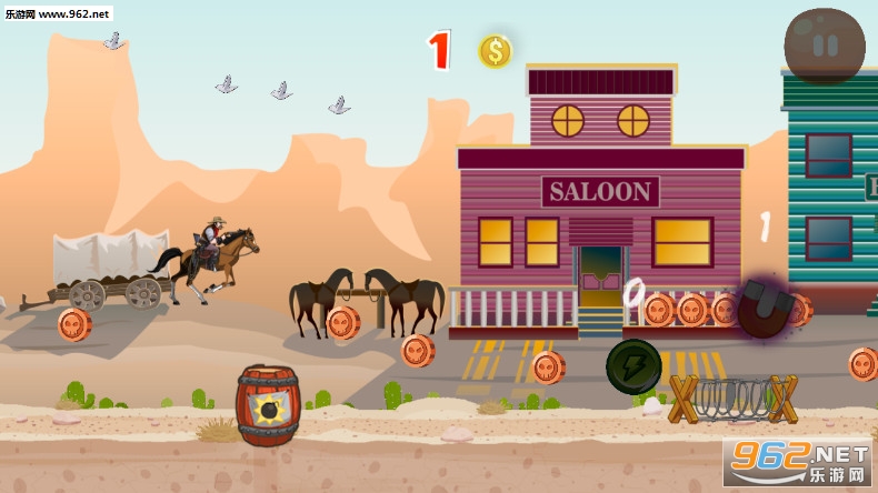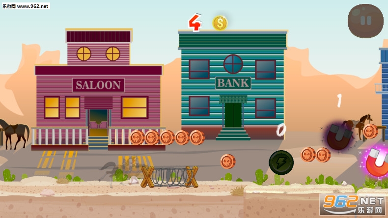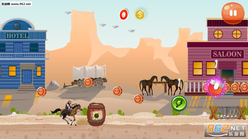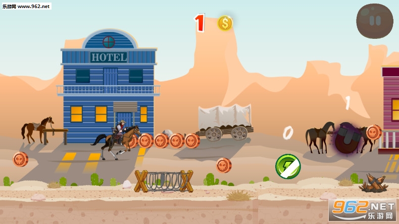 《冲刺吧骏马游戏》是一款卡通手绘风格的跑酷闯关游戏,游戏中玩家化身成为西部牛仔,骑着你的骏马在这个戈壁世界冒险,点击屏幕,让你的马匹跳跃,一次来躲过那些机关陷阱,陷阱非常的多,你要看仔细,很可能一不小心就死了。