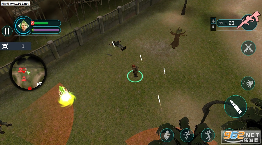 3、游戏关卡比较多,各种各样的生存任务等你体验,虚拟摇杆操作也非常顺畅简单,不同的武器不同的特效,关键时刻注意使用手榴弹;