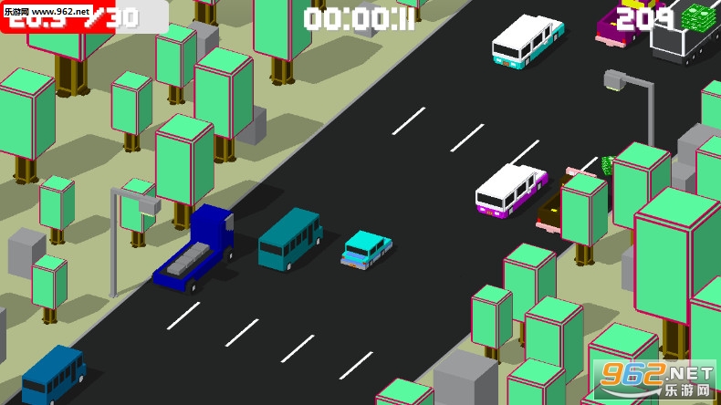1、像素方块风格的画面造型设计让玩家的漂移飙车更加的简单,超简单的操作让玩家享受指尖漂移的乐趣!