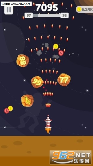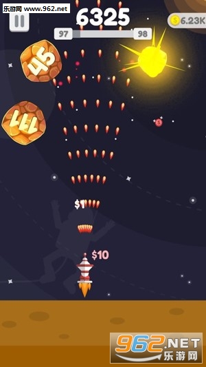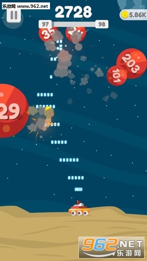 3、星球会分裂,而且遵循物理弹跳效果,玩家需要敏捷的躲避掉落下来的星球;