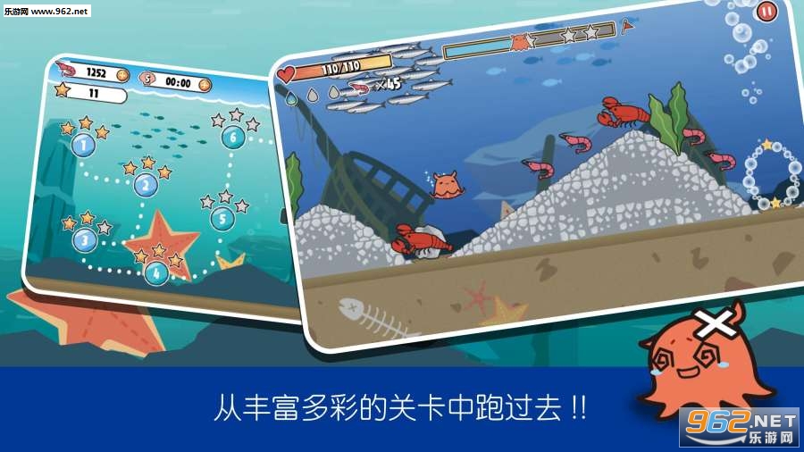 无限关卡上没有终点,而在无限关卡中路线都是随机的。每一个月的分数排行榜,即领先的距离,虾的捕捉数,技能的使用数等,各种各样的要素计算得分。排名前位的人会有一份珍珠礼物!