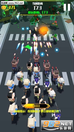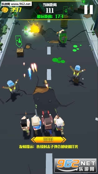 游戏玩法极其简单,控制成员射击的角度,不断击杀僵尸就可以。