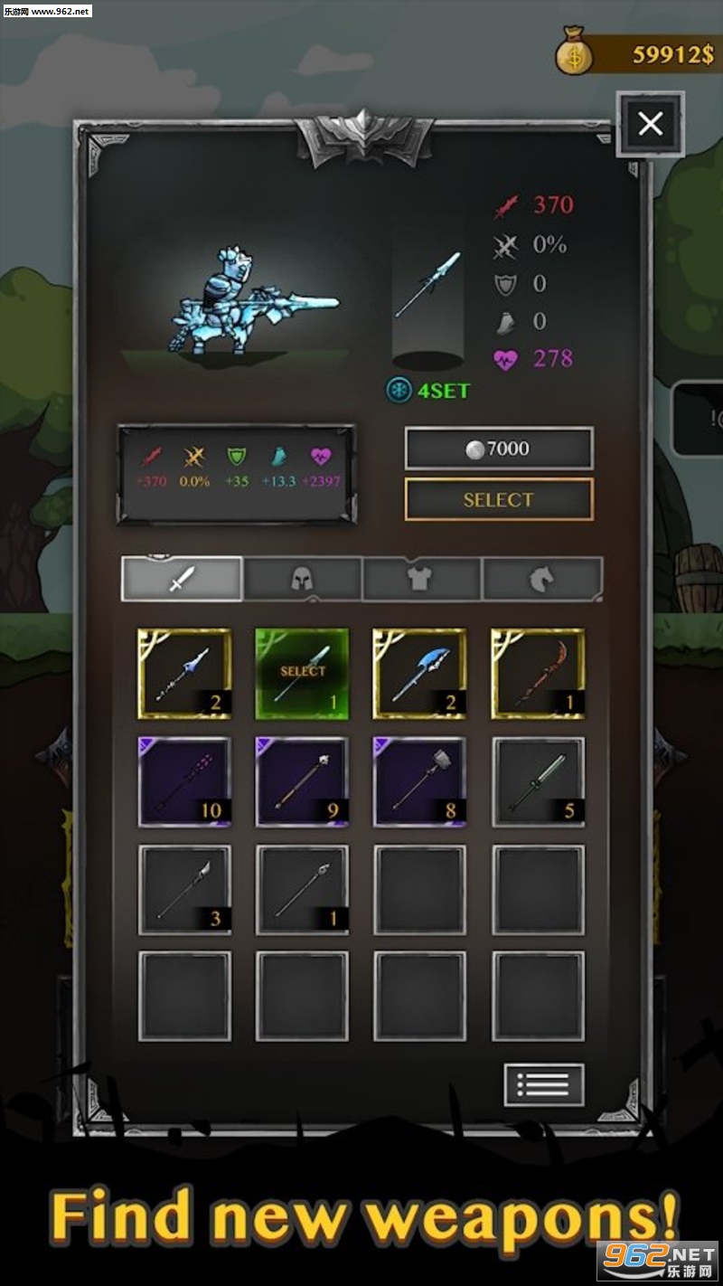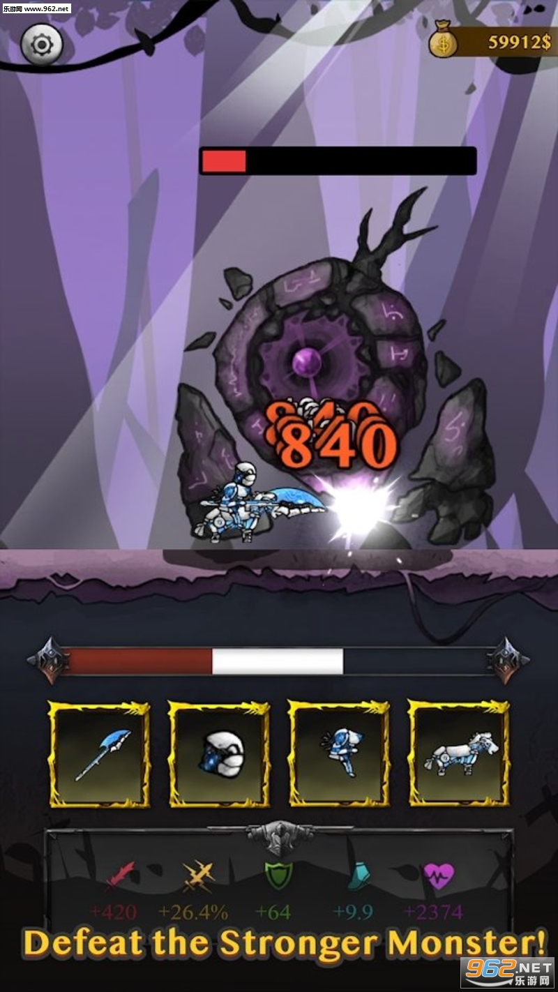 继续前进! 你是“威尔奈特”!收集强大的武器并合并它们!你将成为世界上最强大的骑士。