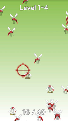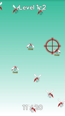许多蚊子都在飞过。触摸屏幕杀死蚊子。因蚊子上下移动,杀死蚊子不容易。杀死蚊子游戏由几个层次组成。如果您在每个级别完成一定数量的灭蚊,您将进入下一个级别。当你杀了蚊子,有一会儿出现一只大蚊子。