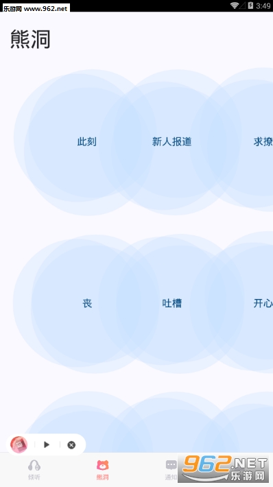 熊洞语音app是一个完全基于语音的树洞类情感倾诉渠道,一个基于语音倾诉内心故事的APP,更是一个纯净的陌生人交友APP。在熊洞语音app这里,所有人都不看颜值,只闻其声,通过声音的交流,来获得彼此精神上的共鸣和好感。
