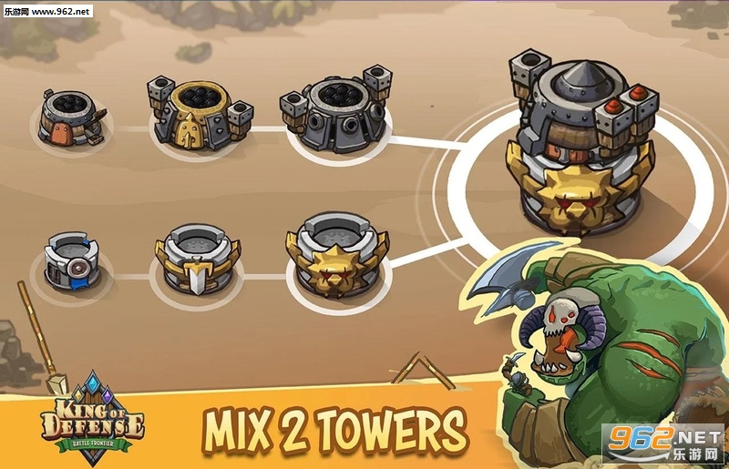 防御之王:Battle Frontier是一款特殊的塔防游戏。炮塔的组合改善了玩家的战术。在这个游戏中,玩家可以将炮塔堆叠在一起,为关卡创建最佳策略。