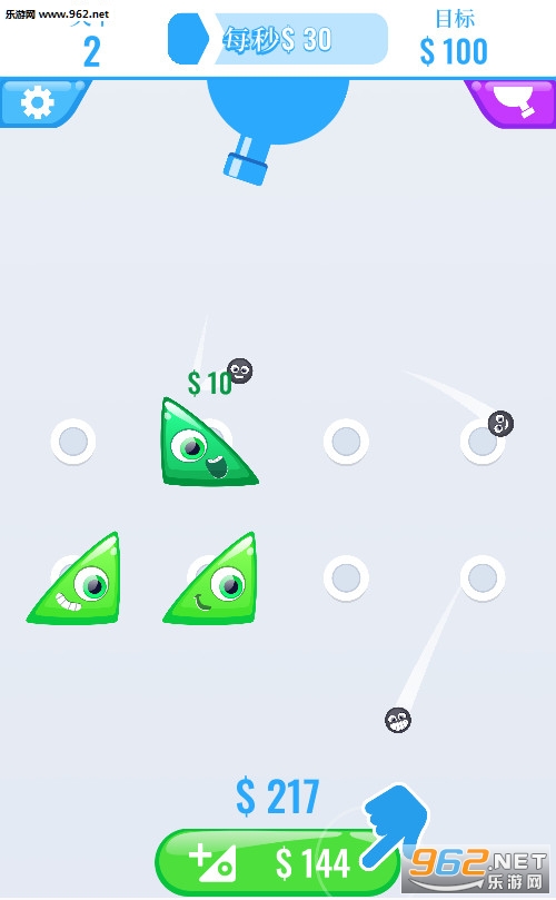 《果冻合并安卓版》是一款2D卡通风格以果冻合并为题材的休闲益智类游戏,在游戏中,会有一个机器从上方不断吐出弹珠,弹珠打在不同级别的果冻上得到的金钱也不一样,你可以用钱买果冻,合并升级它们再赚钱。