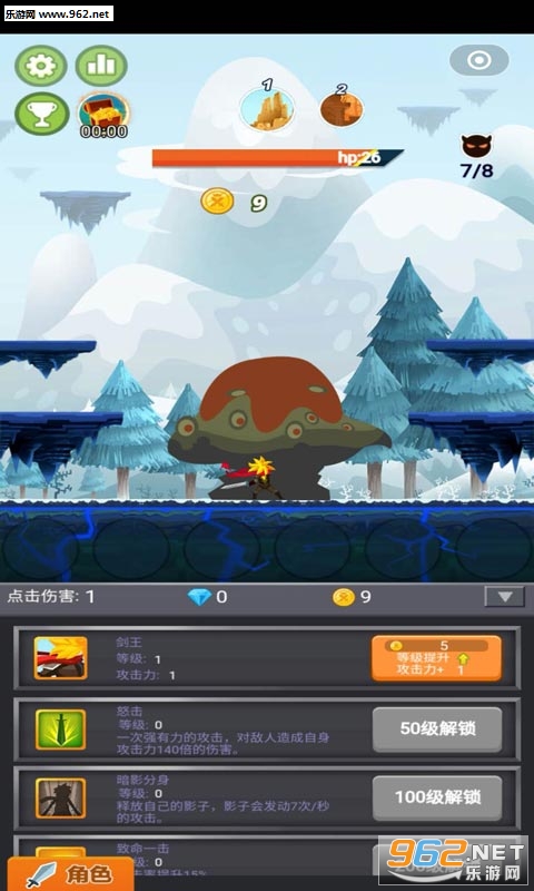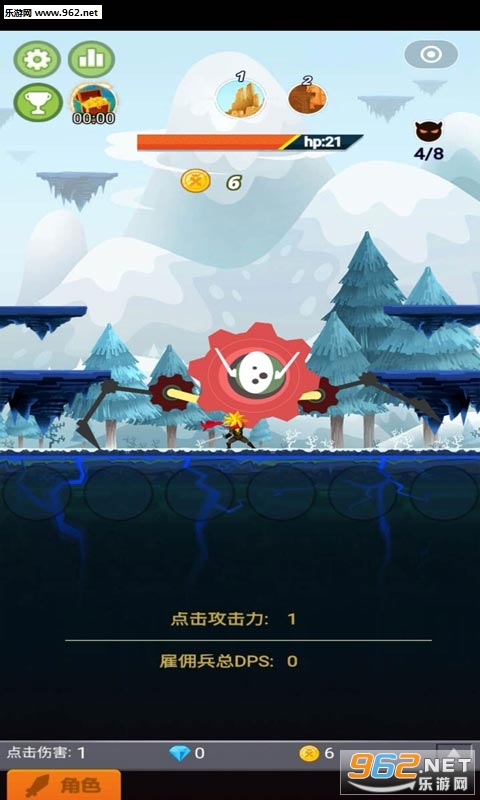 游戏中玩家要不断的点击屏幕来消灭一个又一个的怪物。游戏里玩家每消灭一个怪物都会获得金币,获得的金币可以强化自己或是换取装备。每个关底的boss玩家要是没有在规定时间能消灭掉就会释放技能。