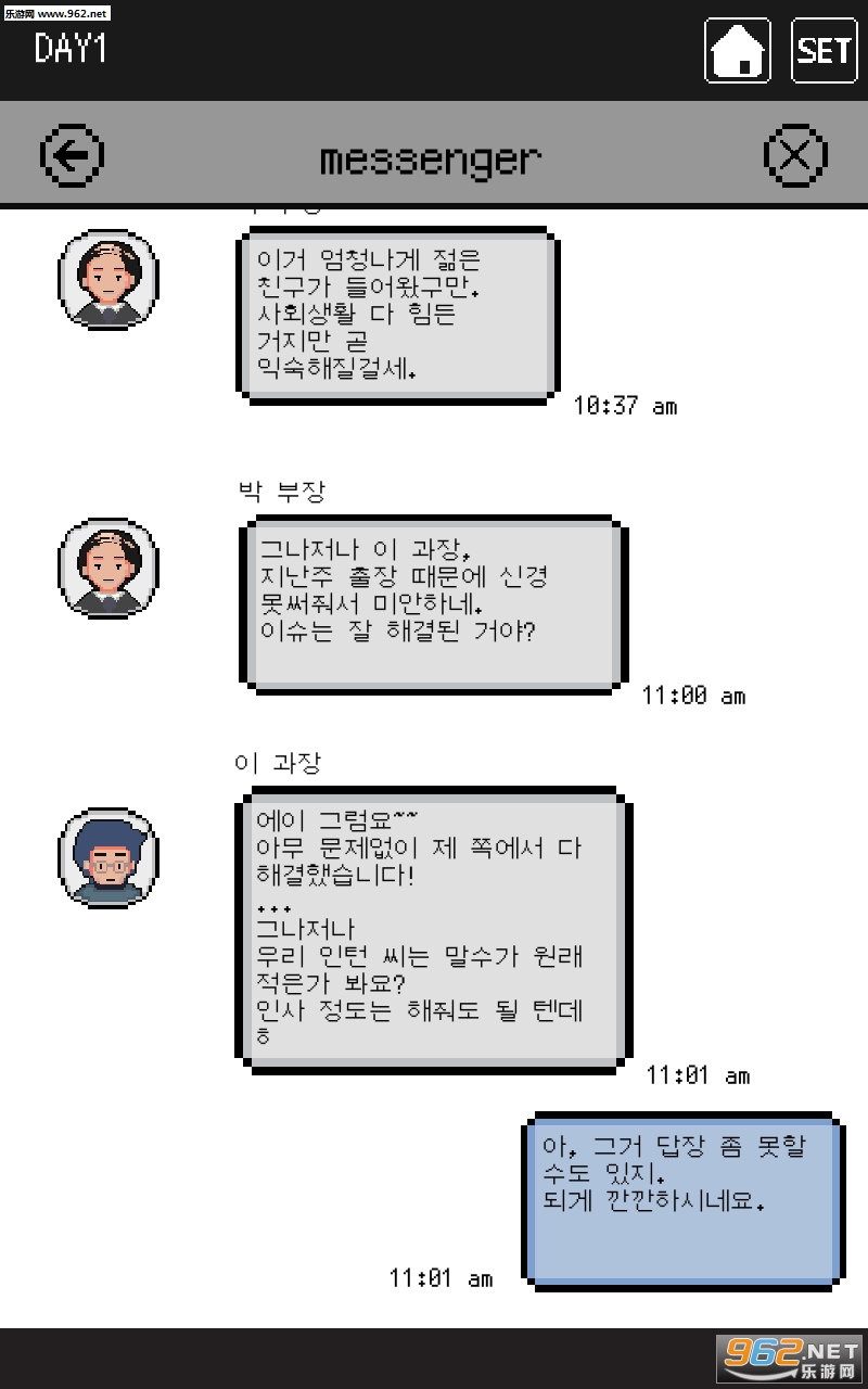一款文字类的游戏,玩家简单易上手,游戏中玩家讲作为协调部门间的传话筒,你需要根据所有人不同的回答去进行传达以及回复,共有25天,玩家需要思考清楚再进行回答哦。
