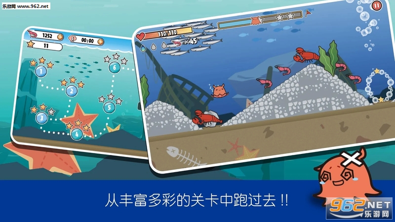 无限关卡上没有终点,而在无限关卡中路线都是随机的。每一个月的分数排行榜,即领先的距离,虾的捕捉数,技能的使用数等,各种各样的要素计算得分。排名前位的人会有一份珍珠礼物!