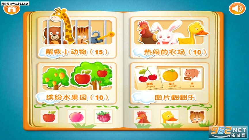 《宝宝学单词安卓版》是一款为孩子们打造的幼儿英语学习软件,软件中有着解救小动物、热闹的农场、缤纷水果园、图片翻翻乐等多种不同的模式可以体验,比如解救小动物,朋友们将给出的一些单独的字母拖动到正确的位置,就可以解救被困的动物了。
