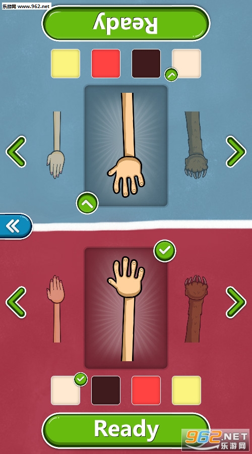 《打手板安卓版》是一款2D卡通风格以双人打手为题材的休闲互动类游戏,在游戏中,你可以和你的朋友分别一人选择手机的上下一边,还有很多样子的手可以供你们选择,骷髅的毛熊的等等都有,选后后就可以准备开始啦!