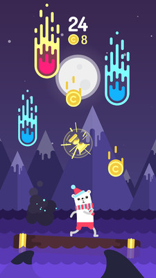 玩家需要灵活控制人物移动,需要避开所有陨石,同时避免掉入水里,很考验玩家的反应力!