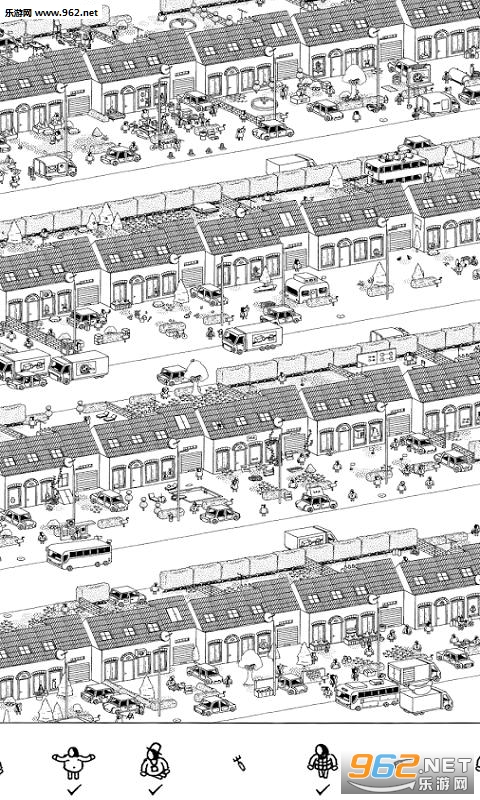 一款看似黑白画风的找茬游戏,而实质上却是一款解谜游戏。游戏要求玩家在画面之中寻找到指定的人,你需要不断移动场景中的各类元素寻找到自己的目标,随着游戏地图的逐渐扩大,密密麻麻的黑白元素,容易让人产生疲劳感,对于密集恐惧症和耐心较低的玩家简直是噩梦。而且游戏如果在手机上推出后这个问题将更加明显,这个问题de Jongh表示他目前正在着手重点解决这个问题,他考虑在游戏中添加一些指引性的提示,以增强游戏的可玩性,比如随着游戏的进行会给予玩家一些只言片语的线索,玩家通过这些信息提示触发机关或剧情让隐藏目标出现等。