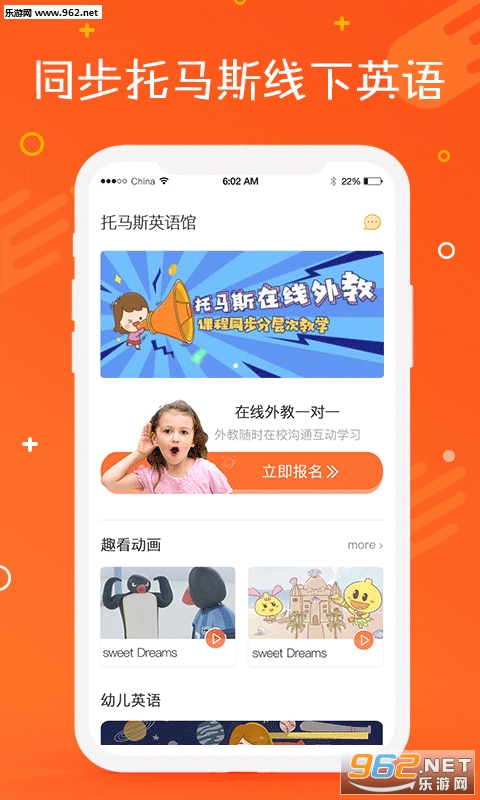 托马斯英语馆APP依托托马斯英语3.0教学模式,将托马斯英语E-learning多媒体学习平台、在线真人外教平台同步到手机客户端,