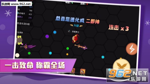 游戏的玩法和“球球大作战”相似,只是将角色手持的武器换了个花样,如果你也想换个口味,那不妨体验一下这款游戏。