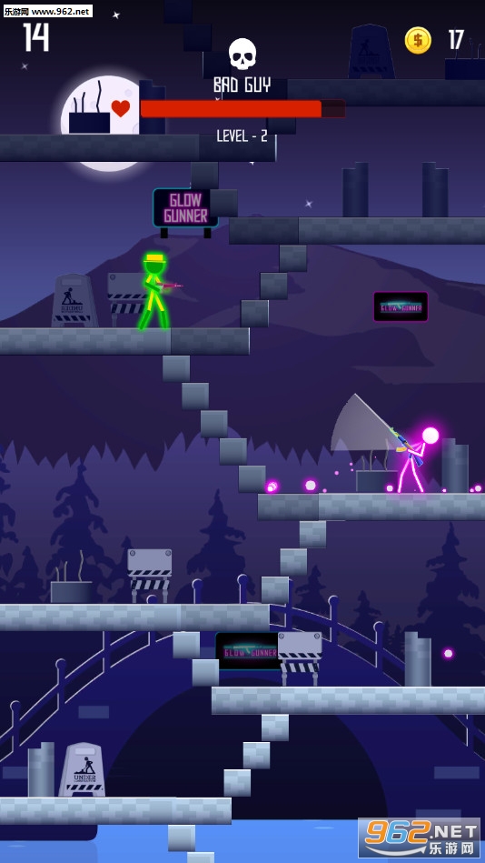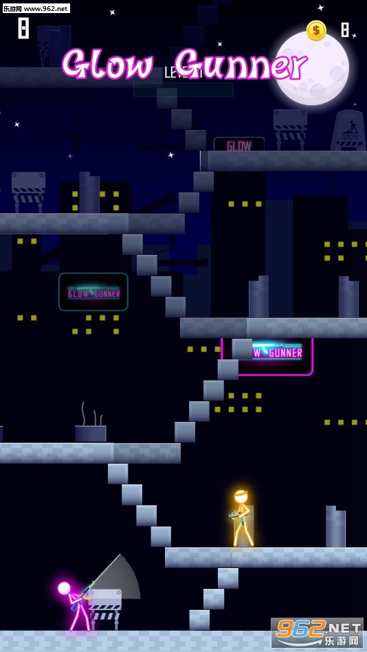《Glow Gunner安卓版》是一款带有霓虹色彩的射击闯关游戏,游戏中玩家将控制一个霓虹火柴人冒险,有着多种不同的枪械可以解锁体验,游戏开始后会自动移动射击的方向,玩家需要找准合适的机会点击屏幕发射子弹,敌人和自己都是有着血量的,归零则死亡。