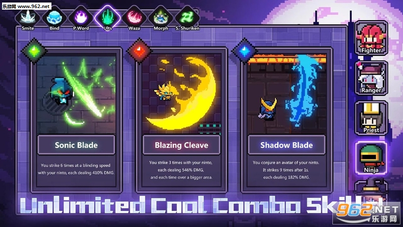 从战士、游侠、法师、牧师、忍者中,选出适合自己的职业。