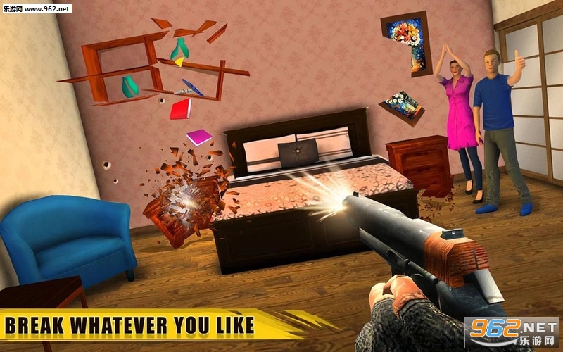 房子破坏者是一款能够让玩家释放压力的射击冒险手游,玩家可以手持MP5、AK47、FN57在各种场景进行射击自然来发泄自己,你可以选择进入人们的房屋,他们会欢迎你射击他们的家具和电视机!