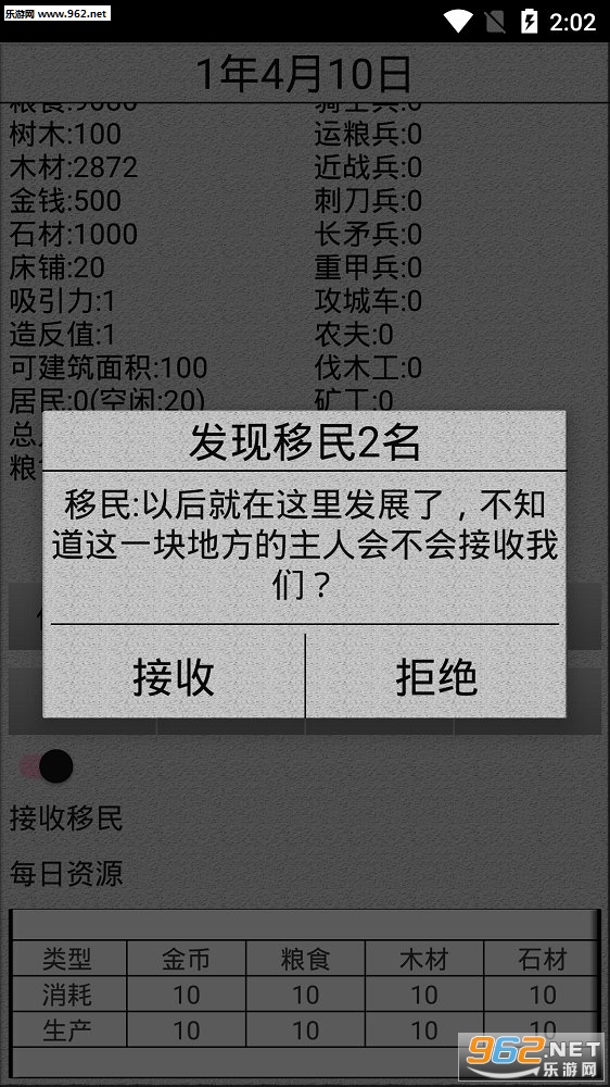 3、前期一般可以把接收移民打开,能更快增加你的人口,后面你的城市发达了,你也可以关掉。