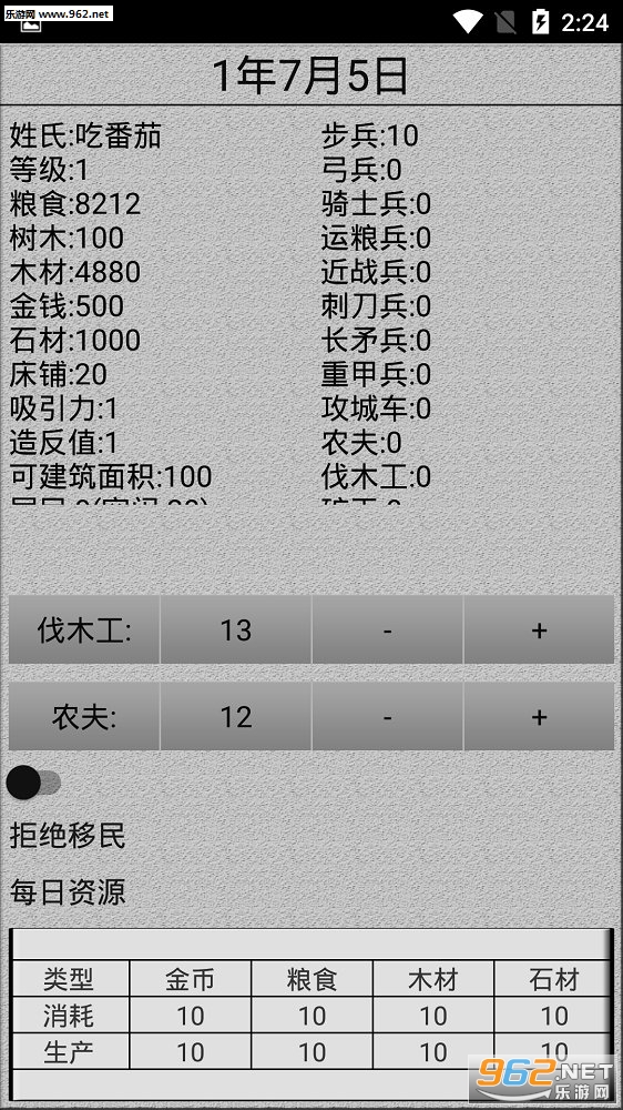 1、文字游戏,模拟了一方领地的运营,粮食、木材等物资数据化,农夫和伐木工的分配等等;