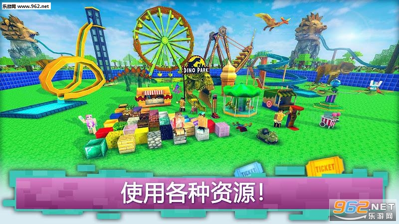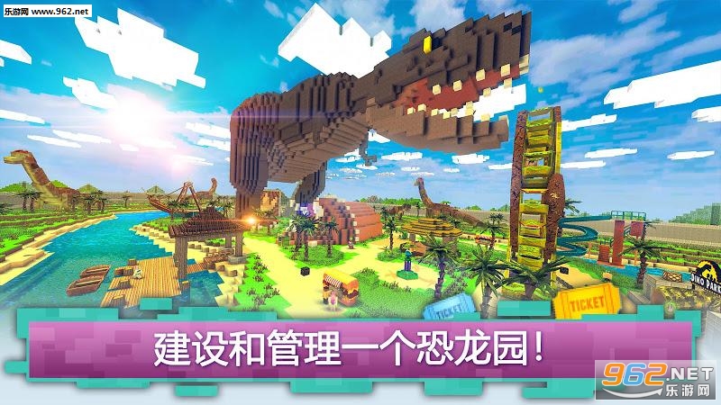 制作一个全新的景点,以获得男孩和女孩的关注!构建恐龙旋转木马,恐龙过山车或虚拟现实家庭游戏虚拟沙龙玩!建造一个有趣的水上滑梯或整个冒险乐园的水上公园。感受可怕的霸王龙的恐龙袭击,或者在史前恐龙村寻找庇护所!这一切都在迪诺主题公园工艺的侏罗纪块状世界。让恐龙野生动物园开始吧!这是与男朋友或女朋友约会的完美场所!赚钱,尊重并成为恐龙世界的大亨!