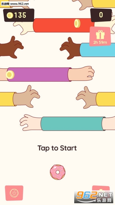 《甜甜圈大挑战官方版》是一款十分好玩虐心的休闲街机敏捷闯关类游戏。游戏非常考验玩家的即时反应能力,在游戏中玩家需要控制一个甜甜圈不断的在人们的手臂之间滚动,注意把握好时机,不要被抓住了。喜欢这款游戏的小伙伴儿赶快来下载挑战一下吧!